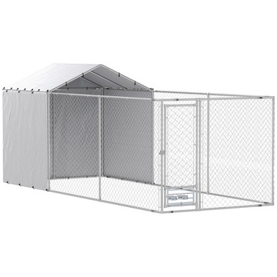 PawHut Outdoor Dog Kennel, 4.6' x 4.6' x 5' Puppy Play Pen with Canopy Garden Playpen Fence Crate Enclosure Cage Rotating Bowl, Black