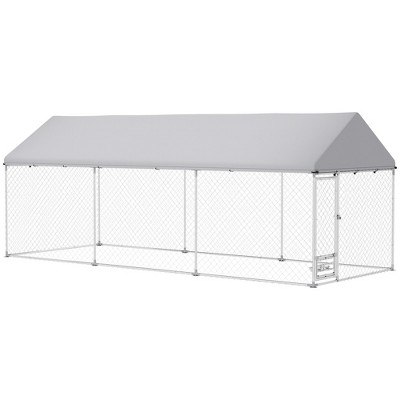 PawHut Outdoor Dog Kennel, Heavy Duty Dog Run with Adjustable & Rotatable Bowl Rack, Waterproof UV-Resistant Cover, Secure Lock, 19.7' x 7.5' x 7.5'