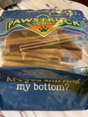 I've been purchasing Pawstruck bully sticks for over ten years. I have terriers under 20 pounds that go absolutely crazy when I pull out their bully sticks, two per dog each week. I've that Pawstruck doesn't send the pencil thin bully sticks. They're substantial and last a very long time with aggressive chewers. I love that they don't smell or stain the carpet or my white furniture or bedding and they don't smell. We've tried many different brands of bully sticks but always come back to Pawstruck. So many other brands lie untouched and get thrown away whereas Pawstruck are immediately taken from my hand and the chewing commences. Each stick lasts my dogs two to three days. These come highly recommended by my pack. Definitely one I'd recommend as well.