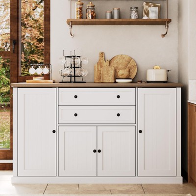- Stylish Vintage Design: Featuring a vintage white body paired with a natural wood top, this cabinet adds a charming and timeless aesthetic to any kitchen or dining room decor.
