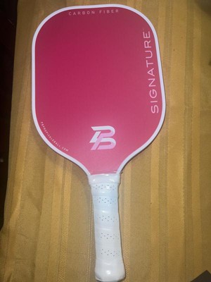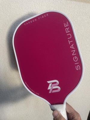 This PBPRO Signature Carbon Fiber Pickleball Paddle is a bright and beautiful pink. The carbon fiber construction is lightweight yet incredibly sturdy. I like that it gives my gameplay an edge and ignites my competitive spirit. The handle is comfortable and feels well balanced in my hands. The grip provides excellent control which is essential for hitting precise shots past my opponent. I would highly recommend this Pickleball paddle and up your game.