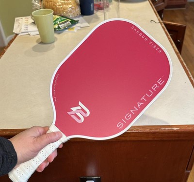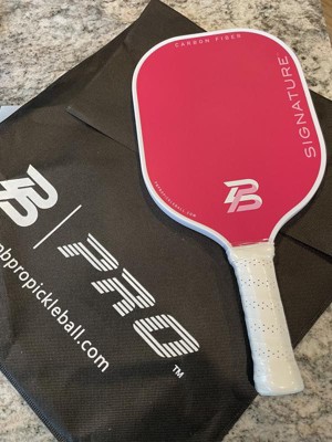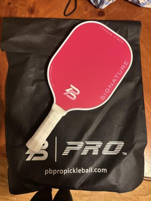 PBPRO Signature Carbon Fiber Pink Pickleball Paddle arrived in its on black carrying bag. I absolutely love the vibrant pink color. The design is really nice and the paddle feels like high quality. I had fun playing with it and it was so easy to use.