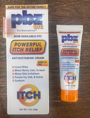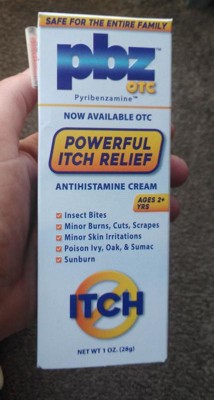 [This review was collected as part of a promotion.] PBZ OTC Pyribenzamine Cream comes in no-fuss packaging, absorbs quickly, has a smooth, light texture, mild scent, and actually works. itch relief on point.