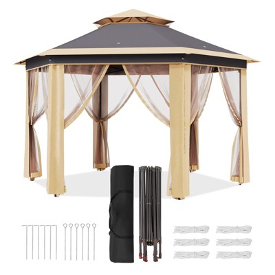 PC Panel Gazebo Double Roof Design, Metal Construction Khaki Color