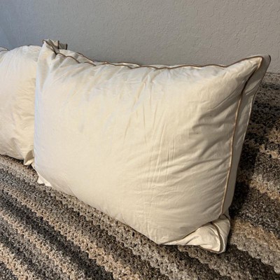 [This review was collected as part of a promotion.] This set of down feather pillows is luxuriously soft and fluffy. I love that the pillow covers are 100% organic cotton and because of that, I can feel good about laying my head on them all night. These pillows have the “down feather smell”, which I personally love. They were rolled very compact for shipping but were easy to fluff up. These are standard size and they fit our pillowcases perfectly. I received an incentive to write this review.