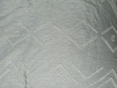 Lightweight, comfortable bed set - with a cute south-west type of pattern. Perfect for warmer climates and nice nights. Color is a beautiful light blue-green with a subtle pattern that adds a bit of dimension to your bed. The fabric is silky smooth, and feels more like a silk fabric than anything else. Came in a small, vacuum tight bag - impressed it expanded to a full-sized bed!