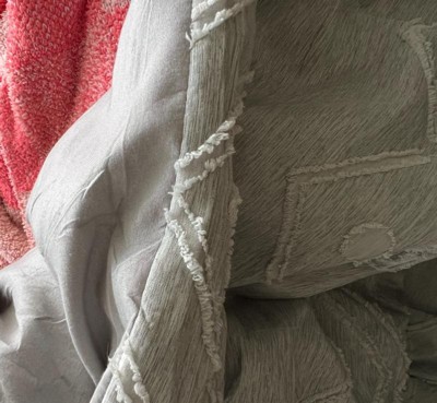 I was excited to get this bedding set since the color matches my home decor. When I got it though, I was disappointed in the quality. The material feels slippery and synthetic. The geometric designs are just ragged pieces of fabric with no stitching. I’m not a fan.