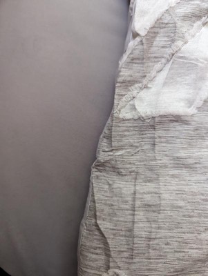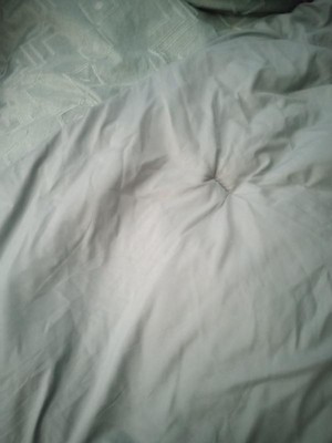 I can’t say I’m a big fan of this comforter. There are a lot of random loose threads on the detail stitching on the front. Combined with the material it looks very cheap. It feels like a hotel comforter, plastic-y. It’s also very thin.