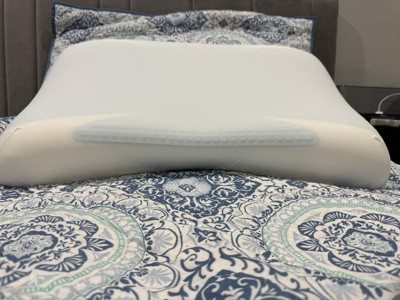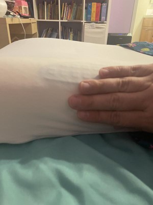 This pillow surprised my husband and I; we’ve been swapping it back and forth for the past few weeks testing it out. This is only our second experience with a gel pillow. The first was far too springy and sinking for our preference. This was firm yet giving, not at all springy and quite comfortable. The cooling aspect brought relief to one of my migraines, and my husband enjoys the sensation on hot days. That said, the spot where your head is resting warms over time (over hours), but that can be remedied by shifting position or flipping the pillow. I find this pillow a little heavy to put my hand under (my preferred sleeping position) but my husband has no issues with this. Overall this pillow has contributed to greater comfort and relief.