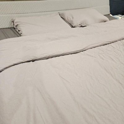 This Peace Nest Classic Linen Cotton Bedding Set, Woven 55% Linen 45% Cotton Duvet Cover far exceeded my expectations. With linen blends you never know how soft or rough things will get. I will say after washing the duvet it was a very nice medium. I am using this duvet during the winter and it does amazing keeping us warm. The color is almost like a brown gray but a very nice color overall. After the duvet was washed it does get wrinkled especially the matching pillow covers. The set comes with 1 duvet and 2 pillow shams. Overall things a great quality duvet. The bottom is zipper closed and the inside corners have tie wraps to connect to your comforter so it stays in place. Great set!