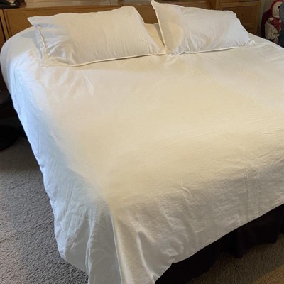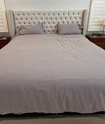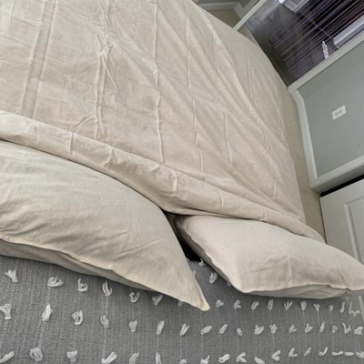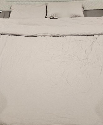 [This review was collected as part of a promotion.] I recently purchased this duvet cover without knowing that it even came with a pillowcase. I thought it was going to be a solid white and this one is a complete beige color. It is nice looking, however it is very much like a linen material. Wrinkles very easily and does not lay very flat for a nice clean look. The duvet has buttons along the top so it’s easy to slide a comforter in and out. I received an incentive to write this review.