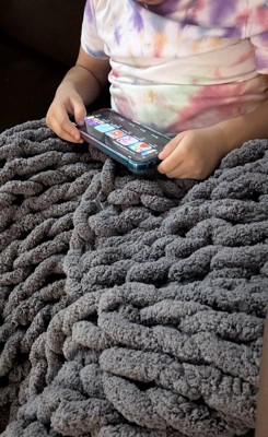 This blanket is very soft and perfect for lounging on the couch. I love the chunky knit, however the gaps in it are quite large. It’s easy to stick hands, fingers, or toes through and I worry it’ll get ripped by the kids or dog eventually. Hopefully it holds up, but we will enjoy it until then