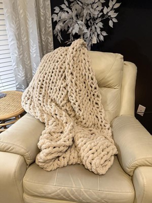 This chunky knit chenille blanket is super cozy and I love how it looks as decor as well. My family has loved how stretchy and soft this blanket is. It's a great neutral cream color to go with lots of decor. I only gave this 3 stars because unfortunately when I received this blanket and opened the package, it had a really terrible chemical like smell. I have tried washing the blanket and airing it out and the smell has improved but still is not completely gone. Hopefully it was just a one case scenario that we had because it is such a nice blanket!