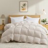A: Dear customer, thank you for your inquiry. The size of the individual squares varies by size: Twin (13.6" x 12.9"), Full/Queen (12.9" x 12.9"), and King (13.3" x 12.9"). As for feather fiber, it's a type of filling material that uses fine fibers from feathers. It's typically softer and more flexible than whole feathers, offering a more lightweight and airy feel while maintaining warmth and comfort. We hope this answer is helpful. Thank you!