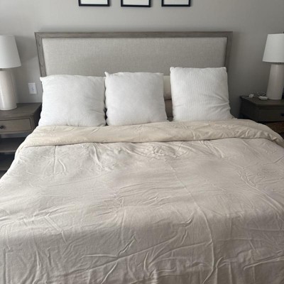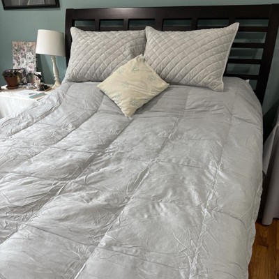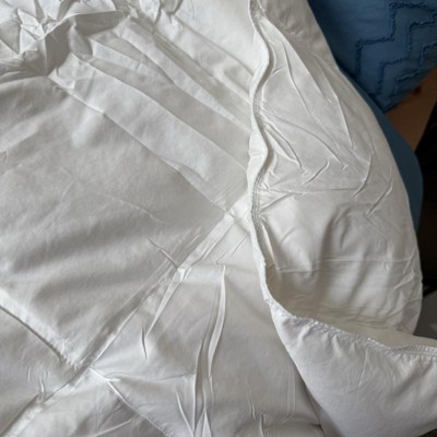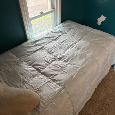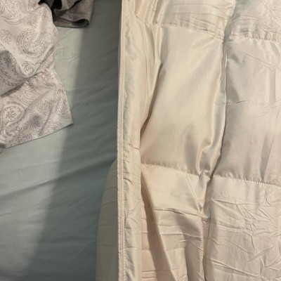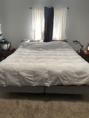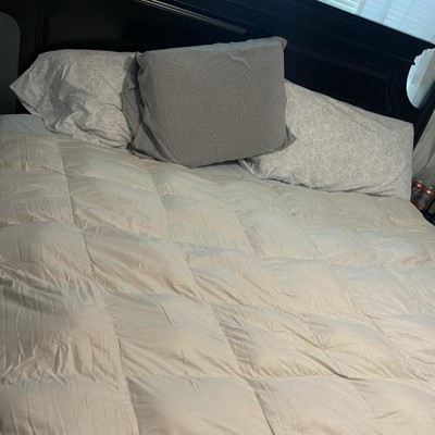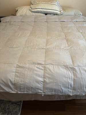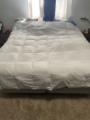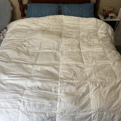 [This review was collected as part of a promotion.] Great quality light weight duvet insert. Don’t be alarmed at the size of box it ships in, the comforter comes vacuum sealed and because it is feather filled shrinks to a surprisingly small size. There are loops in the corners and along the straight edges to attach to a duvet cover. A simple shake, took two of us for the king size, fluffs up the feathers and added fullness instantly. Because if the way it’s packaged, if you aren’t planning on using a cover you may want to steam out the wrinkles. I received an incentive to write this review.