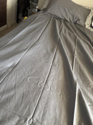 My review on this duvet set is strictly of my experience. Now when it arrived it was basically in a like sack. I, Honestly didn’t like the feel of the pillow cases and cover it felt more damp and moist all the time on my bed so I, took it off. I, thought it would’ve been thicker but it’s actually not overall love the pretty gray color.