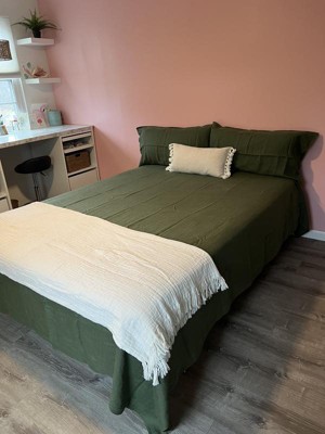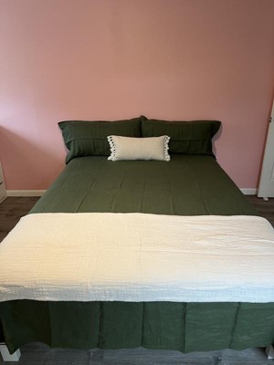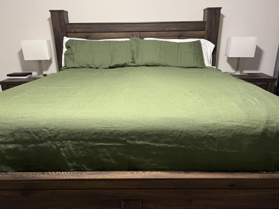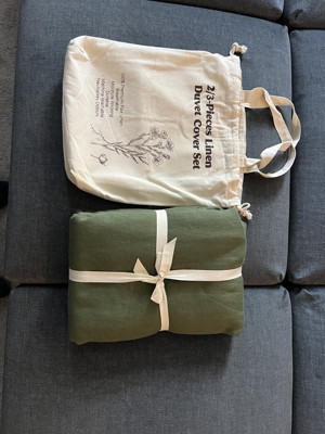 The Peace Nest 100% Premium Flax Linen Duvet Cover and Pillow Sham set in green is gorgeous and feels like luxury.
