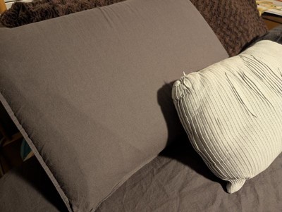 I love the color of this set. It’s such a pretty deep grey and looks so tailored and sophisticated. Out of the linen packaging the fabric was very soft, cool and almost silky. However, after one wash…. It came out feeling pretty scratchy. I am hoping after a few more washes it will soften up again.