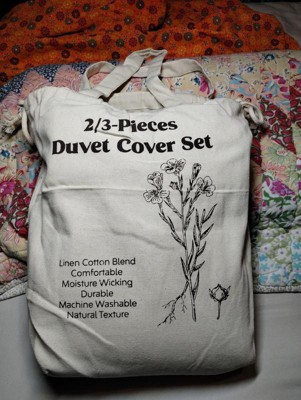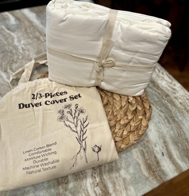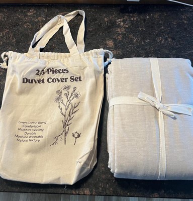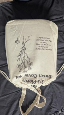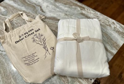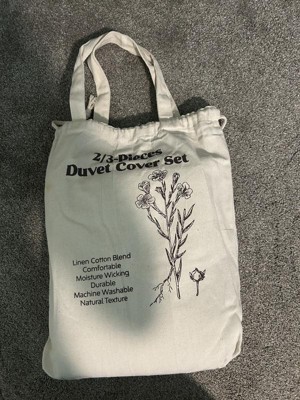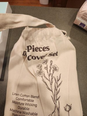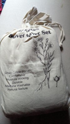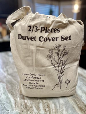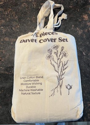 This three-piece nest linen cotton blend duvet cover set is amazing! It's so comfortable and feels beautiful. The fabric is so breathable! Another perk, is the cute little package that it comes in! A reusable bag! I am obsessed. I might even use this and tie-dyeed it!