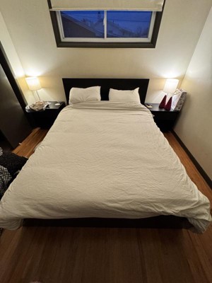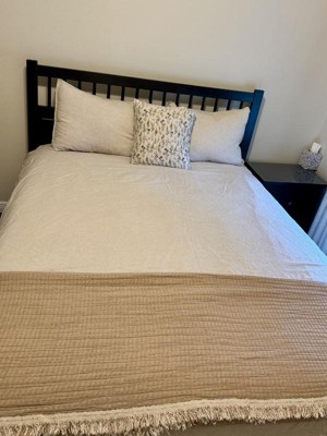 This linen cotton blend is soft and comfortable. It has sewn corner ties to attach the duvet and keep it in place. It has a zipper closure. The cover fits true to size woth a queen duvet insert. The cover did not shrink when washed as instructed. I find that it does wrinkle easily, as you can see in the photos, so you must remove from the dryer immediately. The duvet is simple but could look elegant with thr addition of pillows and blankets. The neutral beige would look great with pretty much any decor.