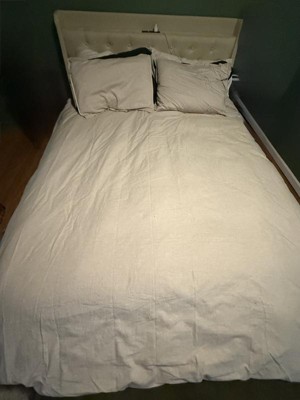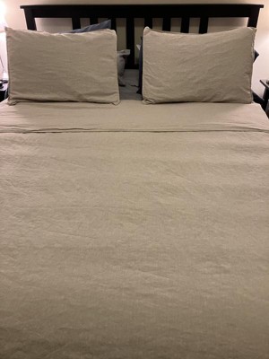 Linen duvet and shams are so cozy and inviting. The beautiful neutral color is perfect in my guest room. The fabric softened up quite a bit after just one washing. The pillow shams shrank a lot in the dryer. I followed the washing instructions so I’m not sure what went wrong.
