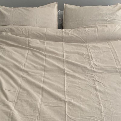 [This review was collected as part of a promotion.] I recently purchased this duvet cover without knowing that it even came with a pillowcase. I thought it was going to be a solid white and this one is a complete beige color. It is nice looking, however it is very much like a linen material. Wrinkles very easily and does not lay very flat for a nice clean look. The duvet has buttons along the top so it’s easy to slide a comforter in and out. I received an incentive to write this review.