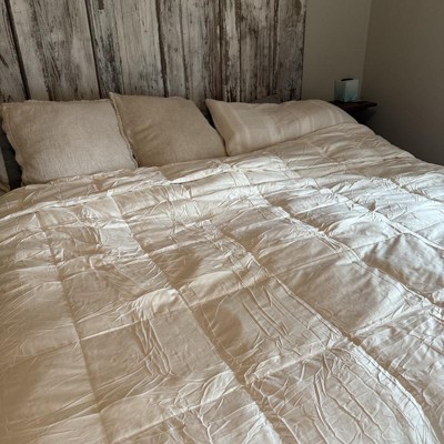 [This review was collected as part of a promotion.] Nice thin solid comforter that goes with any decor! Came compressed in its packaging, but fluffs up into a nice, thin comforter perfect for summer (or hot sleepers!) or for layering with blankets in cool weather too. See photo for thickness. Love that there’s also corner loops for being able to insert into a duvet cover, but we’ll use this on it’s own in our guest room. I received an incentive to write this review.