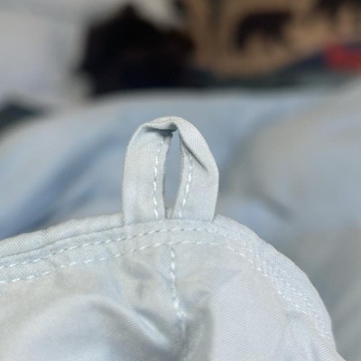 [This review was collected as part of a promotion.] Nice thin solid comforter that goes with any decor! Came compressed in its packaging, but fluffs up into a nice, thin comforter perfect for summer (or hot sleepers!) or for layering with blankets in cool weather too. See photo for thickness. Love that there’s also corner loops for being able to insert into a duvet cover, but we’ll use this on it’s own in our guest room. I received an incentive to write this review.