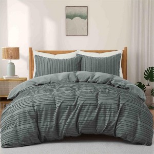 Peace Nest Microfiber Clipped Duvet Cover Set with Stripe Pattern - 1 of 4
