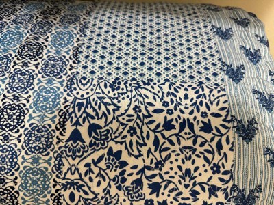A: Dear customer, thank you for your questioning. Yes, the coverlet set is machine stitched. We have navy color available, and the digital images we display have the most accurate color possible. I hope my answer would help. Thank you.