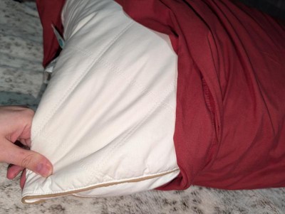 These pillows are OKAY. Not bad for guest pillows, but not my favorite for myself every night. They’re fluffy and comfortable, but made of a material that is kind of stiff and noisy- even under a pillowcase it was noticeable to me. They did stay fluffy after sleeping on them and had a nice size and shape, but it was hard to feel like this was “my” pillow.