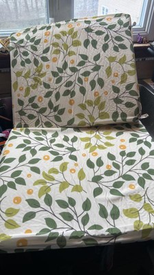 I absolutely love these. They came so much cuter than I was expecting. They are soft and thick. The green and yellow pattern are perfect for outside. There are also strings to tie them to the seat themselves to keep them put