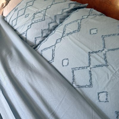 [This review was collected as part of a promotion.] This duvet cover is a very pretty, saturated shade of blue. The geometric design is attractive and I like the texture of it. However, the fabric is much thinner than I expected and I don’t know that it will hold up very long. Some duvet covers can be used without an insert and still look nice but this one really does need an insert because it is so thin. I’d probably only use this for guest rooms as it seems most suited for light use. I received an incentive to write this review.