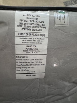 Peace Nest Ultra-Lightweight Goose Feather Down Fiber Blanket with Satin Trim, White, 90x108 inches