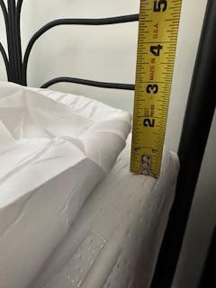 I’m not even convinced I got the right item it’s that bad. I can’t believe this is listed as 4 inches. As you can see from the photos, it’s an inch, maybe an 1.5” at most. Here is is on top of a queen air mattress. As you can see it’s not a true queen size and much smaller width and one of the edges is very uneven. It’s incredibly wrinkly and flat. Target should be ashamed selling something of this quality.