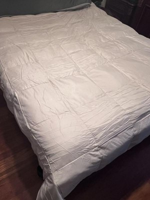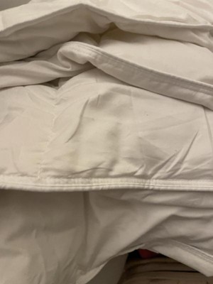 This is such a nice comforter, really fluffy and heavy. It may be a little too warm for year round use but fantastic for cooler months. It’s great on its own or use with a duvet cover. I would recommend this for a high quality option.