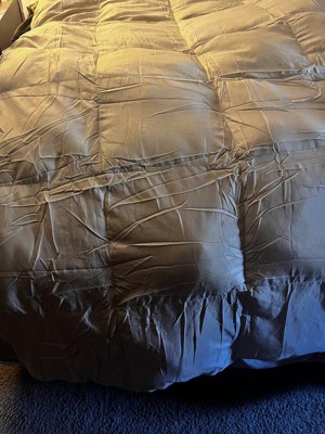 I’m not sure why no one isn’t saying anything about how much noise this comforter makes. It is very soft and comes in beautiful colors but my purchase point was to have a SILENT comforter. I hear myself turning and I can hear my husband moving around every single time. Not too heavy to be honest but it’s soft and it really does keep me warm when I used it as a blanket.