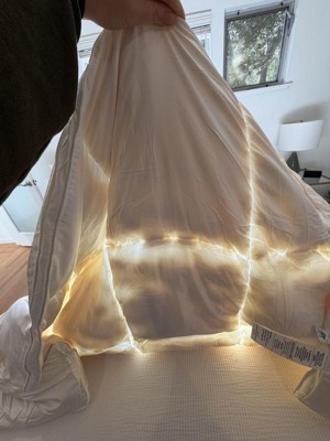 I was impressed with how thick and warm this is. I bought it because I needed a warmer insert and my old looked flat. Looks good finally in a duvet insert, but a little too warm for me. Exchanging for a medium weight.
