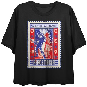 Peacemaker Blue & Red Christopher Smith & Adrian Chase Junior's Black Crop Top - 2 of 4Peacemaker Blue & Red Christopher Smith & Adrian Chase Junior's Black Crop Top - 3 of 4Peacemaker Blue & Red Christopher Smith & Adrian Chase Junior's Black Crop Top - 4 of 4