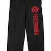 Sleep in peace with these Peacemaker sleep pajama pants. The pants feature an image of Peacemaker's helmet in red while red letters below spell out the hero's name. The pants come in black with an adjustable elastic waistband and a pair of pockets. Fans of the Peacemaker TV series will love these cozy sleep pajama pants.