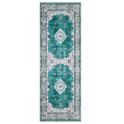 Peacock Green Runner Rug 2x6 Vintage Bohemian Distressed Oriental Carpet Runners Long Rugs for Hallways Kitchen