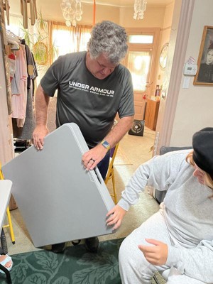 [This review was collected as part of a promotion.] We just picked this table up and it’s already becoming a favorite. The table is lightweight, (I even think 9 year old daughter could carry it around) while also being really sturdy. We love the slim folded design of this model. It’s going to make storage much simpler compared to the table we are replacing. It’s also lightweight enough I’d consider throwing it in the trailer to take on camping trips. Really like the grey table top, should stay much cleaner than our previous white table. Set up was super easy, and the carry handle tucks away nicely when set up. We previously owned a competitor’s table, which had a carry handle which dangled down into your lap. Overall really happy and excited to use it.