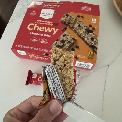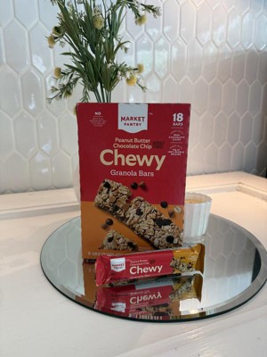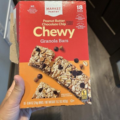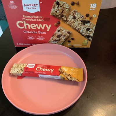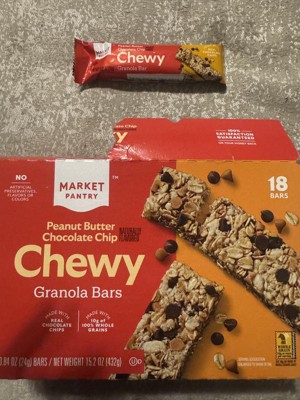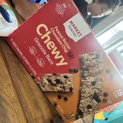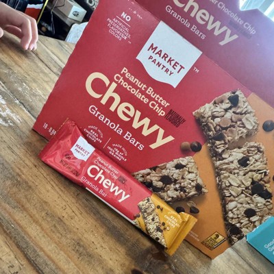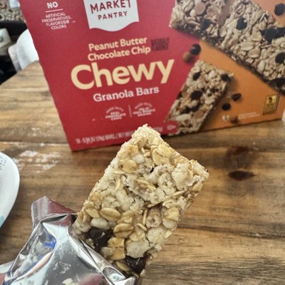 [This review was collected as part of a promotion.] These are the Market Pantry Peanut Butter Chocolate Chip Chewy Granola Bars and they are delicious. They are soft, so soft they will bend and break if not careful. I usually break off small bites so I slow down and pace myself or I will eat the entire bar in two bites. There is a perfect amount of chocolate chips and you can really taste the peanut butter. We love these for an on the go snack, in lunches or for a late night snack. These only have 100 calories each and only 7 grams of added sugar. I received an incentive to write this review.