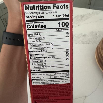 Market Pantry granola bars. These are pretty tasty. The puffed rice and granola are soft and chewy. Right amount of chocolate and peanut butter chips. Great for snacks and to take on the go. 100 calories a bar.