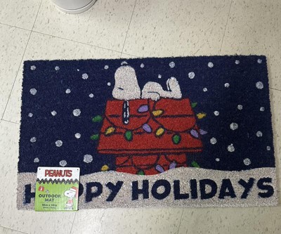 Peanuts 1'5"x2'5" Snoopy Happy Holidays Coir Doormat Natural: Indoor Outdoor Rectangle, All-Weather, Medium Pile
