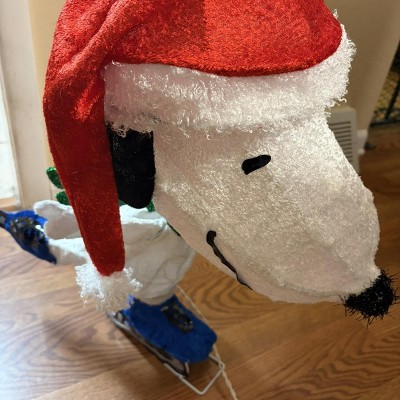 Peanuts characters add a touch of seasonal holiday decor to your front yard, front porch, or home with adorable Snoopy indoor/outdoor Christmas decoration. The ProductWorks 24inch Peanuts Skating Snoopy in his scarf and Santa hat and 3D pre-lit with 70 LED Bulbs looks great day or night. Make the neighbors and guests smile as Snoopy skates into their hearts this Christmas. Set up is quick and easy: just plug it in and your decoration will be fully lit. Weather resistant fabric and steel coated frame will have Snoopy cheering up the neighbor for many Christmas to come