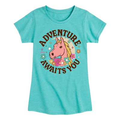 Peanuts - Adventure Awaits - Toddler and Youth Girls Short Sleeve T-Shirt - From the best-loved comic strip in history comes officially licensed PEANUTS apparel for fans everywhere. Show your love for Charlie Brown, Snoopy, Woodstock, Lucy, Linus, Pigpen and the whole gang. Copyright Peanuts.