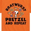 Peanuts - Bratwurst Pretzel And Repeat Snoopy - Toddler & Youth Short Sleeve Graphic T-Shirt - From the best-loved comic strip in history comes officially licensed PEANUTS apparel for fans everywhere. Show your love for Charlie Brown, Snoopy, Woodstock, Lucy, Linus, Pigpen and the whole gang. Copyright Peanuts.