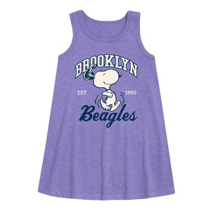 Girls' - Peanuts - Brooklyn Beagles Graphic Sleeveless Aline Dress - 1 of 4