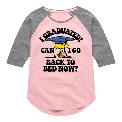 Girls' Peanuts Camp Woodstock Shirt Tail Raglan Graphic T-shirt - Light Pink/Ath Hea - Medium
